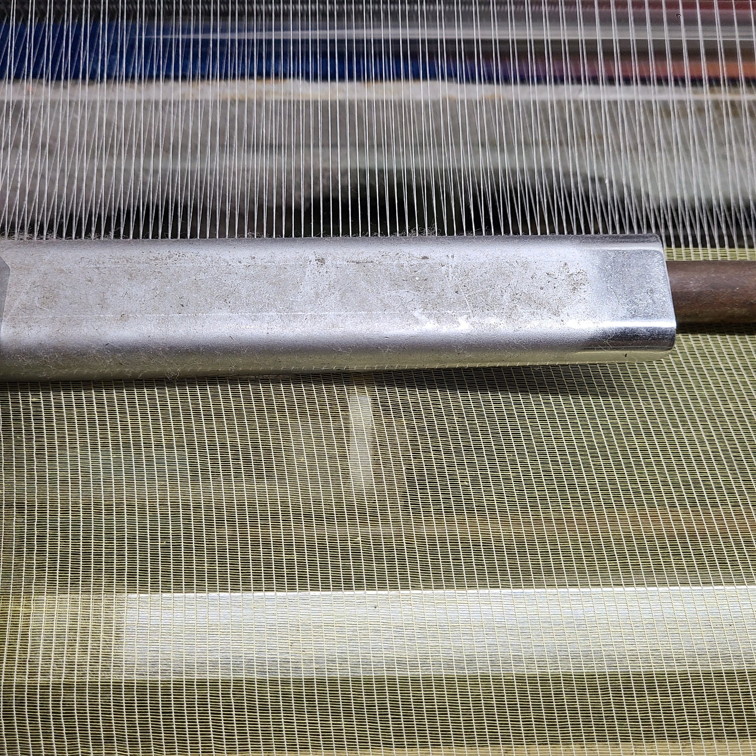 経糸が切れないように機械の回転数を2/3(当社比)くらいに落として織ります。