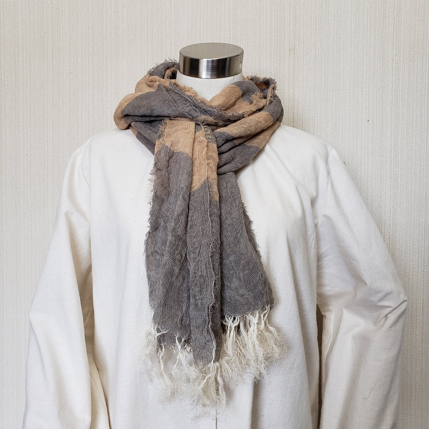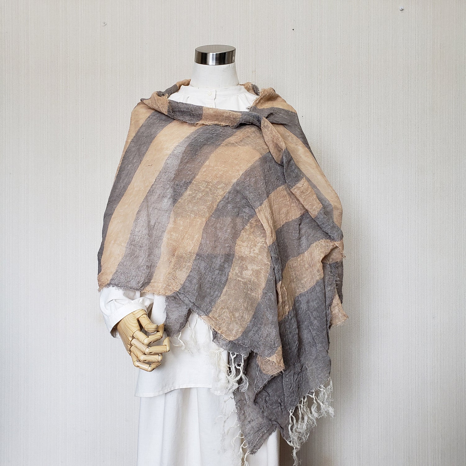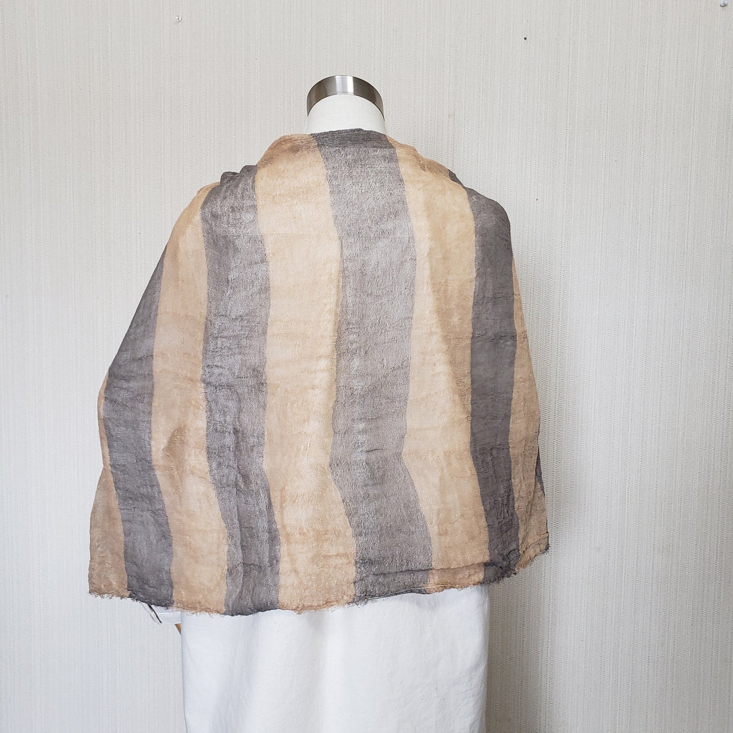 亀田縞 からみ織オーガニックコットンストール ロング モカとベージュのボーダー