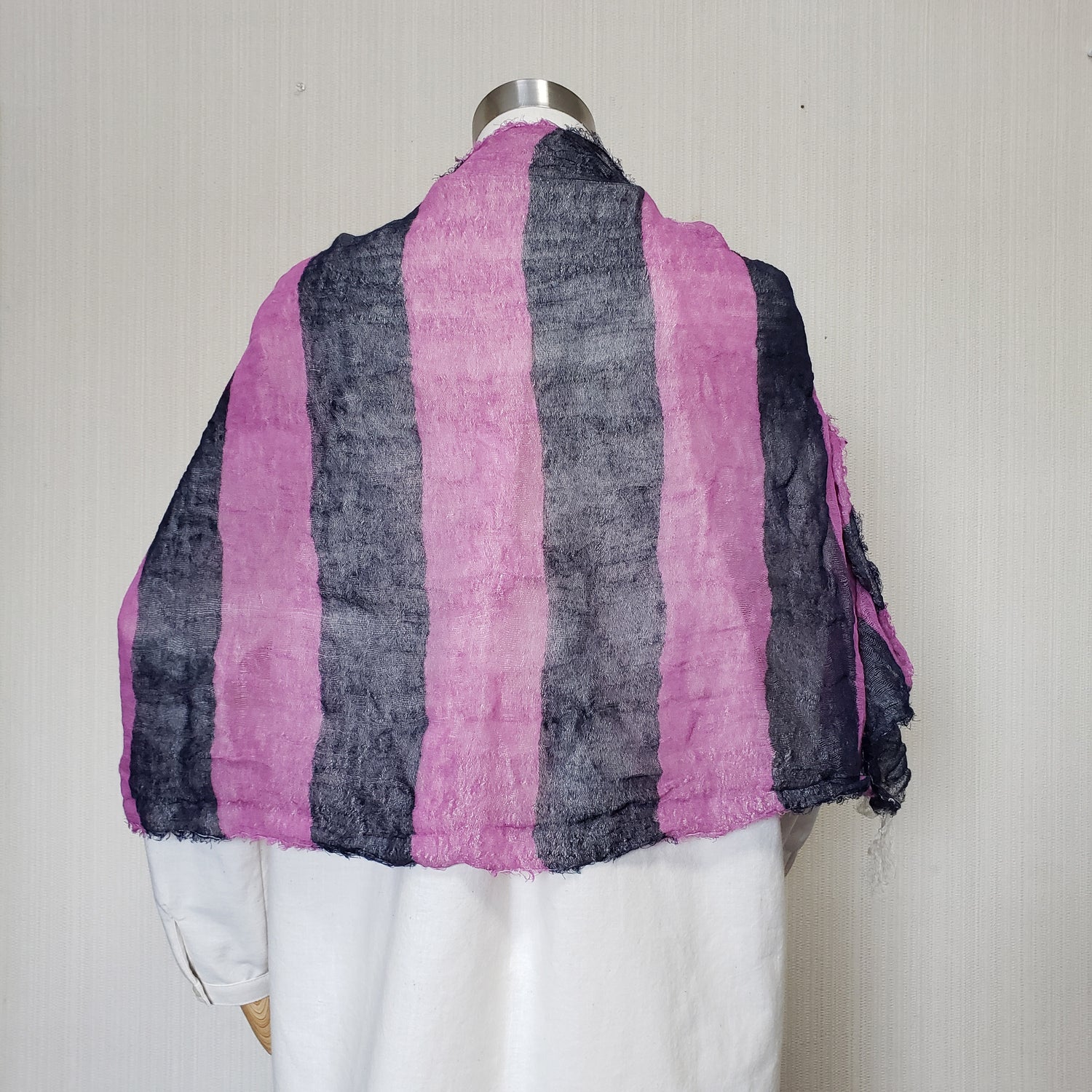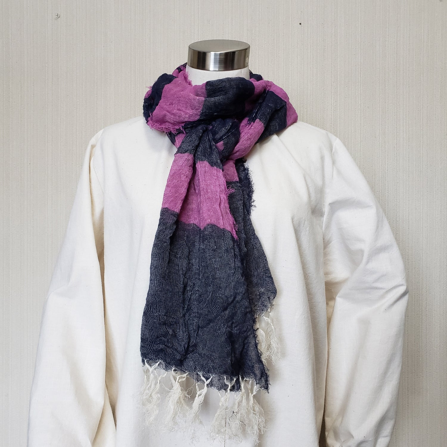 亀田縞 からみ織オーガニックコットンストール ロング 紺と貝紫のボーダー